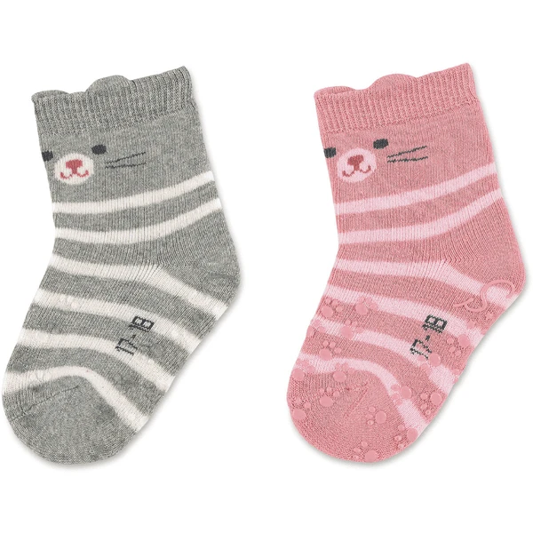 Sterntaler ABS Peutersokken Twin Pack Kat Licht Grijs