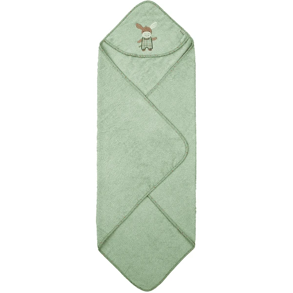 Badcape van zachte badstof, met opgestikt borduurmotief “Emmilius” ezel. De knuffelgarantie volgens de B aden .