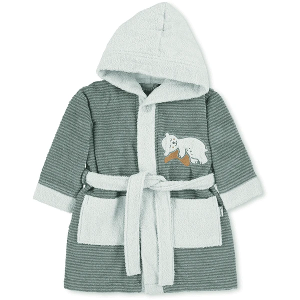 Mooie badjas met capuchon van zachte badstof met geappliqueerd borduurmotief Bear Ben, die zorgt voor het knuffeluurtje na de B aden .