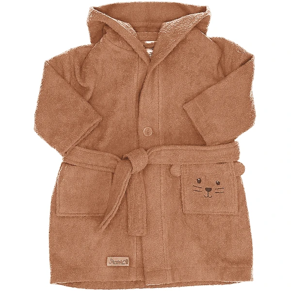 - Badjas met capuchon, gemaakt van zachte badstof (biologisch).