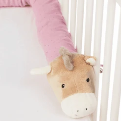 De zachte bedrol van Single jersey en fleece stof uit de serie Pony “Pauline”. Voor het knuffelen in bed of in de auto, als extra randbescherming, als nest en in de box. Kan worden vastgebonden en beschermt tegen tocht.