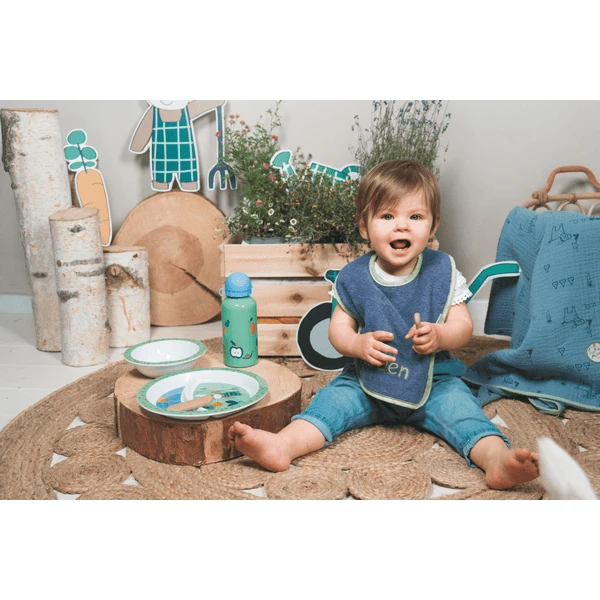 Een prachtig kinderbord met een chique ezel Emmilius motief. Met anti-slip bodemdeel, zodat het bord op zijn plaats blijft tijdens de maaltijd. Het is ook voedselveilig en vaatwasmachinebestendig.