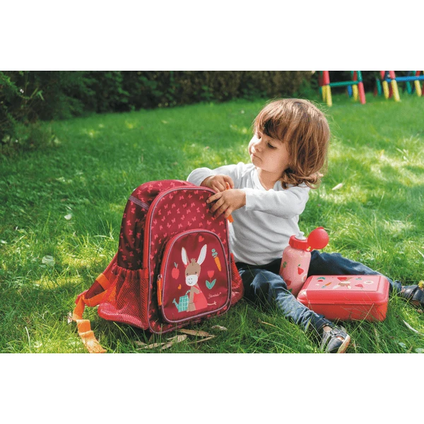 De kindvriendelijke broodtrommel biedt voldoende ruimte voor een smakelijk tussendoortje en dankzij de praktische binnenindeling kunnen fruit, groente of andere kleine hapjes ook apart hun eigen plekje vinden. Het schattige ezeltje uit de serie ‘Emmis Garden’ zorgt ervoor dat uw kleine lieveling zich amuseert en geniet van het eten. De praktische clipsluiting op het deksel maakt het gemakkelijk om het te openen en te sluiten – dus zelfs de allerkleinsten kunnen de lunchbox alleen gebruiken.