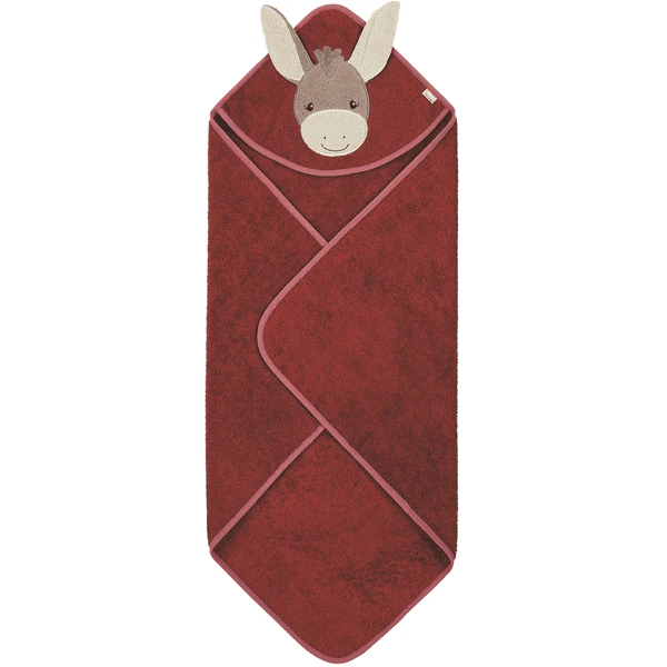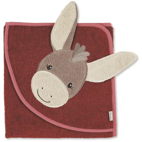 De donzige badhanddoek met capuchon van badstof met de geappliqueerde ezel “Emmily” beschermt het natte hoofd tegen tocht! Voor de knuffel-garantie na de B aden .