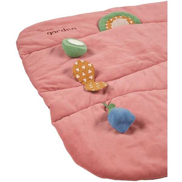 Baby’s eerste speeltuin! De zachte kruipdeken gemaakt van Nicki, Poly cotton , Nickicord en fleece stof met motief ezel “Emmily”. De pieper, het knisperende papier, de rammelaars en de spiegelfolie prikkelen de zintuigen van je kleine schat.
