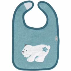 - Praktisch slabbetje met klittenband voor gemakkelijk aan- en uitkleden in zachte badstofkwaliteit.