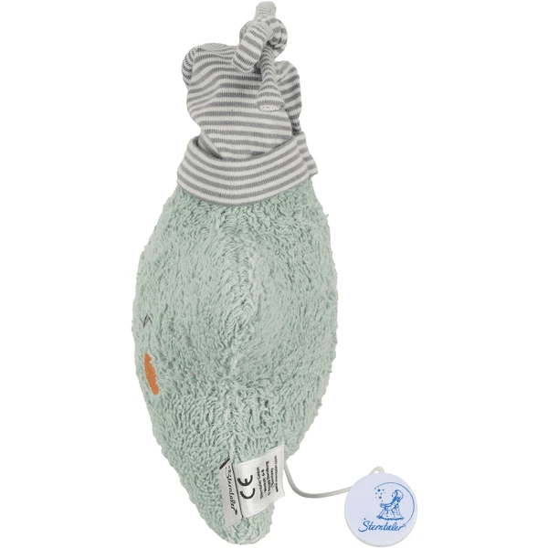 Gemaakt van knuffelbaar badstof en jersey met een geborduurd gezichtje, kijkt hij toe hoe jij droomt. De ritssluiting maakt het gemakkelijk om het speelgoed te verwijderen en het figuur is gemakkelijk wasbaar. Met de riempjes is hij gemakkelijk te bevestigen aan het bedje, de kinderwagen of in de auto.
