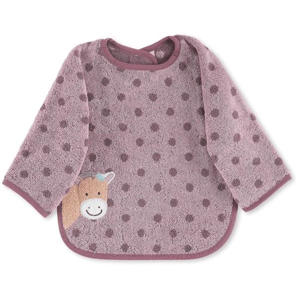 Slabbetje met praktische klittenbandsluiting in aangename badstofkwaliteit, met geappliqueerd borduurmotief Pony “Pauline”.