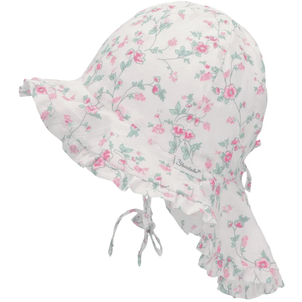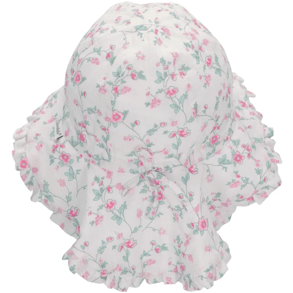 - Zonnehoed van katoenen stof, bedrukt met bloemen.