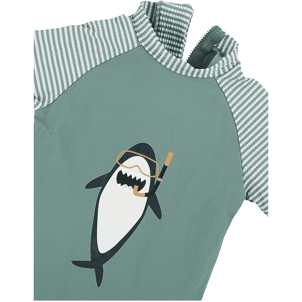 - Met haaienprint, ingelegde ritssluiting op de rug en kleine opstaande kraag